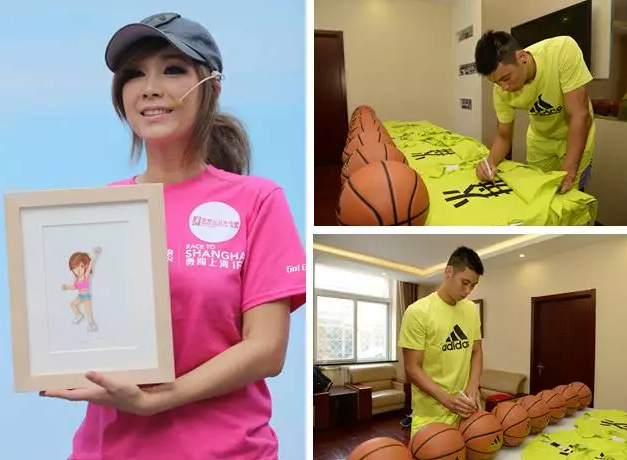 ▲ 在之前的活动中,郑多燕亲手绘制的插画和林书豪亲笔签名的T恤和篮球,都加入了慈善义卖