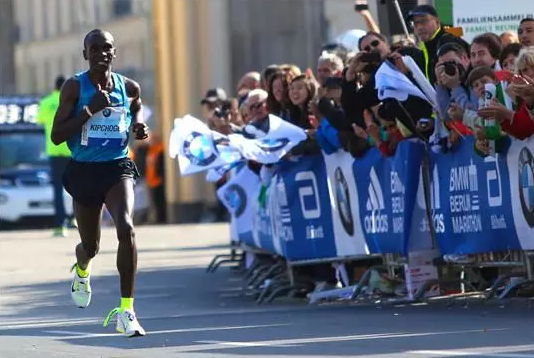 就算没见着世界纪录,说不定还能看到些别的神迹。就拿今年的柏林马拉松来说,冠军基普乔盖(又是肯尼亚选手!)2小时4分00秒的成绩已经很不俗了,关键人家可是在一只脚的鞋垫脱落的情况下跑得!