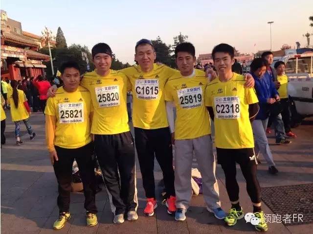 2013年,周弘进(右二)与同事一起参加北马,从未练过长跑的他用2小时跑完了半马。