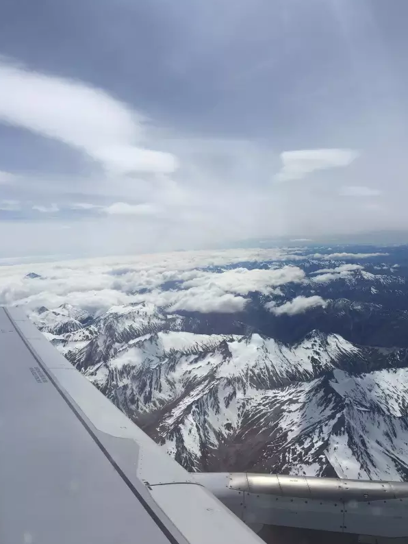 便捷的转机后,我们又登上了前往皇后镇的航班,在飞机上睡意朦胧的我被陆先森摇醒,他让我看窗外,连绵的雪山,蓝色的湖泊置落在山云之间,这明明就是仙境。