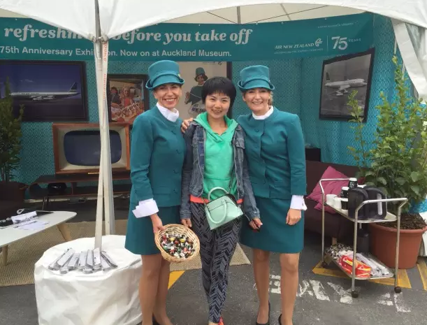 今年是新西兰航空75周年,领取装备处还有空姐身着复古制服发糖,据说这套空姐服可是迪奥设计的哦。