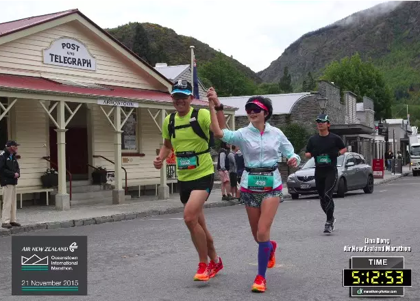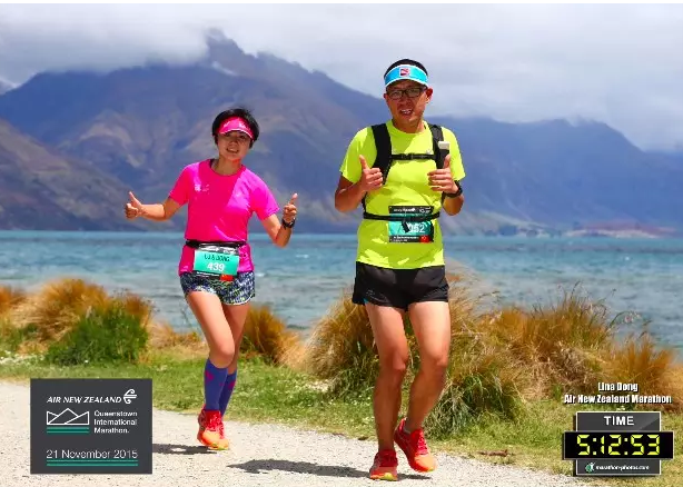 皇后镇马拉松有个定制服务,也就是可以将自己的名字、昵称,口号印在比赛号码簿上,我输入了“Lu&Dong”,正式开启了我和陆先森的蜜月马拉松之旅。