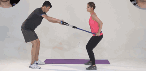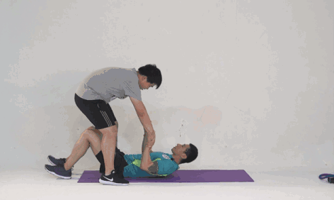 2.两人手掌互相扣住对方手腕,站立者将另一人完全拉起。