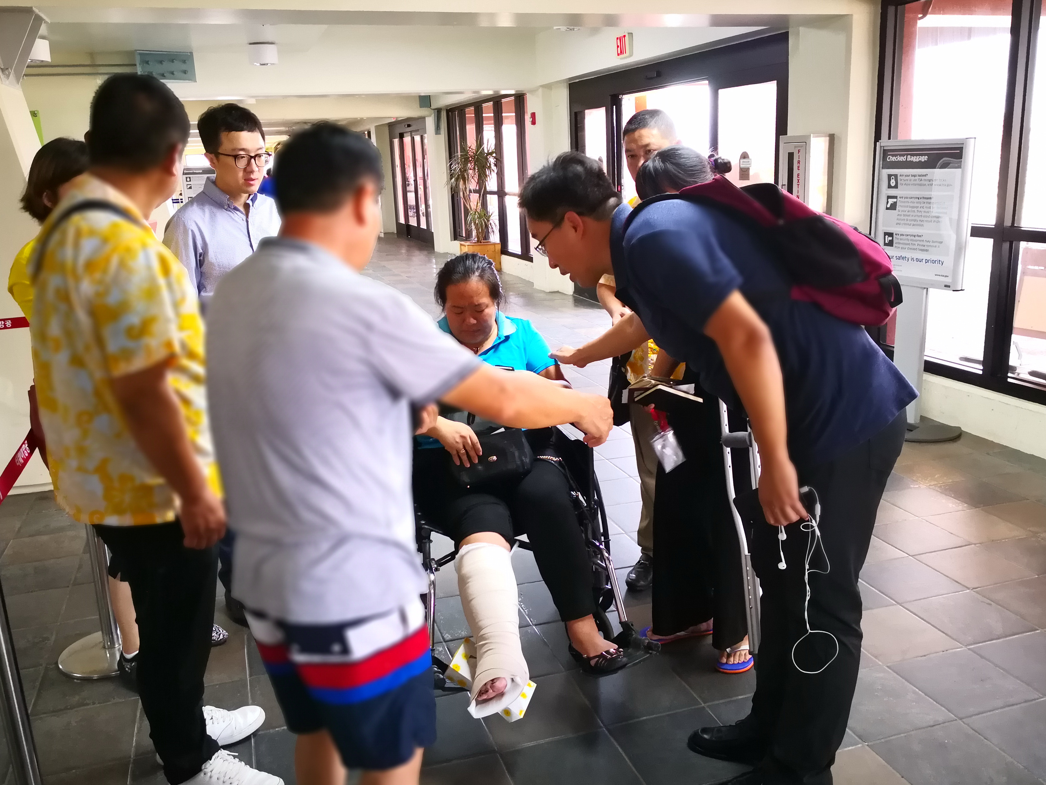 台风“玉兔”袭击北马后,在当地对外交通全部中断的情况下,驻洛杉矶总领馆10月26日派遣解世波领事、石俊豪副领事组成工作组辗转飞行,于当地时间10月28日晚抵达关岛。10月29日晨,工作组搭乘当日唯一航班到达塞班岛,抵达机场后即与有关航空公司碰头,研究航班抵离、乘客登机等的具体安排,现场慰问我游客,协助乘客和航空公司顺利办理相关手续,协调解决了53名 非包机散客购票登机诉求。在工作组协调下,一名滞留在罗塔岛中国游客搭乘小型货机返回塞班,并搭乘包机回国。在塞班期间,工作组得到了航空公司、地接旅行社和侨胞等的大力支持,我国游客也予以全力配合。