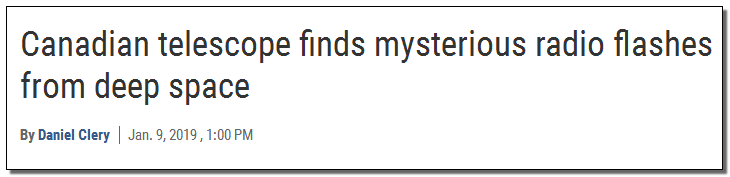 “加拿大科学家发现来自宇宙深处的神秘电波闪光。”