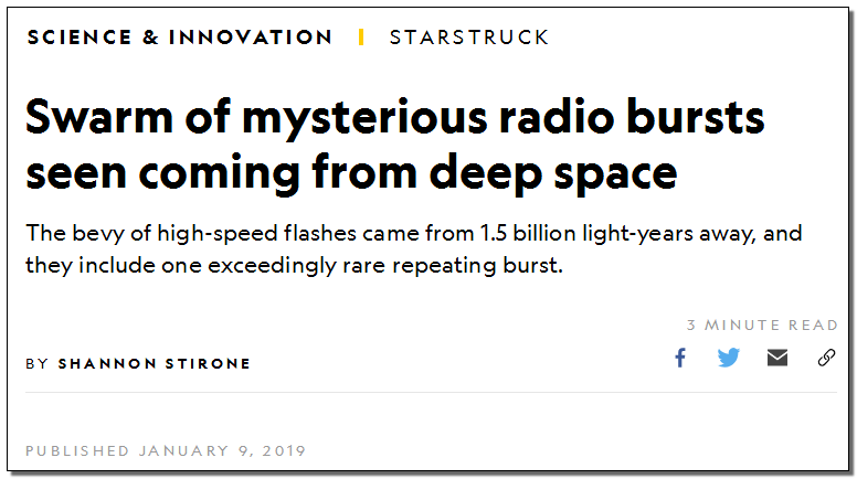 “目睹来自宇宙深处的神秘无线电爆发群。”