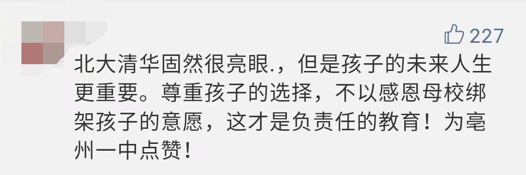 此前,有媒体报道,安徽亳州第一中学八名考生高考成绩全都超清华、北大的录取分数线,但他们却集体放弃了两所名校的志愿。
