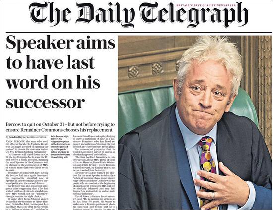 《每日电讯报》以“议长想对其继任者说的最后一句话”为题