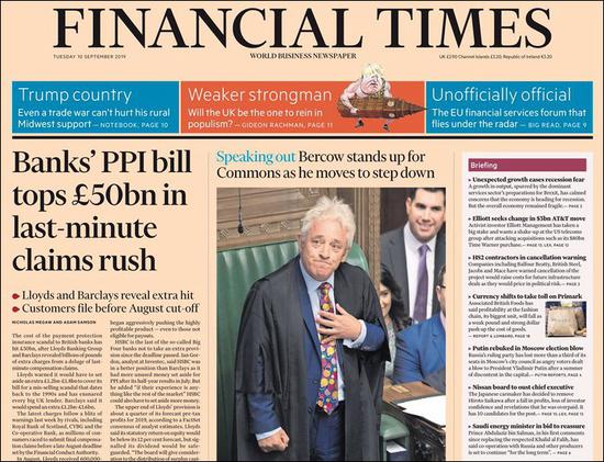《金融时报》称“在辞职之际,议长用公开的演说捍卫了下议院的立场”
