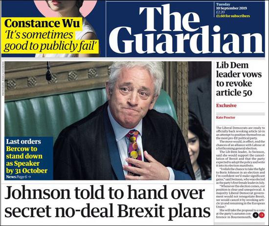就在议会再次否决约翰逊提前大选提案前,伯考在英国时间9日宣布,如果提前大选通过,他将在周一晚上辞职。如果没有,那他将于10月31日(脱欧期限)离职。