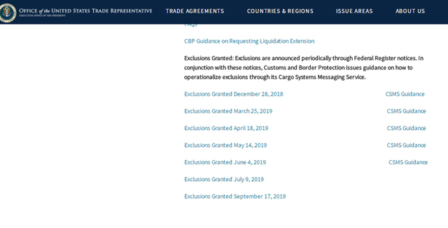 USTR在关于340亿美元加征关税商品的排除清单通知中称,2019年9月17日,USTR发布第3290-F9号通知,对可获得关税排除的商品进行公告。根据美国《1974年贸易法案》第301条b款,第301条c款和第307条a款以及跨机构301条款委员会的建议,美国贸易代表宣布对其中310项商品实行关税排除。声明称,该决定还参考了“咨询委员会及公众对相关关税排除产品的建议和意见”。