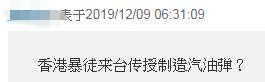 对于香港暴徒赴台,也引发岛内网友的担忧,他们痛斥,“香港暴徒来台传授制造汽油弹?”