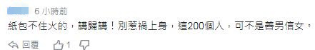 还有人喊话台当局,“只会叫人不要触法,实际作为呢?都被报道有200人入境,这些人是一群把香港公共设施打砸破坏又对百姓暴力相向的暴徒,让这些人非法进来台湾是非常严重的事,台当局该把这些人清查出来吧。”