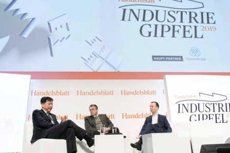 本次对话为《商报》2019年度工业峰会系列活动之一,由《商报》总编阿弗贺佩(Sven Afhüppe)主持,共有近200名德国企业高管、商界人士参加。