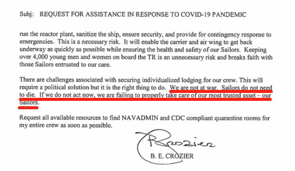 △“罗斯福”号舰长的信件截图