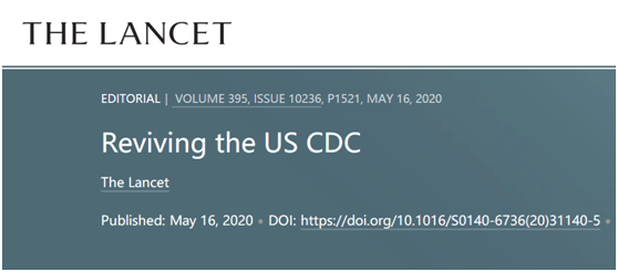 “美国人必须在2021年1月前让一位总统入主白宫,而这位总统需要明白,公共卫生不应该受到党派政治的影响。”随着新冠肺炎疫情在美国持续恶化,累计确诊病例超过140万,死亡超过8.7万,世界顶级医学杂志《柳叶刀》5月16日发表题为《把权力还给美国疾控中心》(Reviving US CDC)的社论,批评美国政府无视卫生专业人员的警告,并对美国疾疾控中心横加干预。有美国媒体随后对《柳叶刀》文章进行解读,认为这家顶尖医学杂志是在敦促“换掉特朗普”,而其得出该结论的依据则是本文开头那句话。
