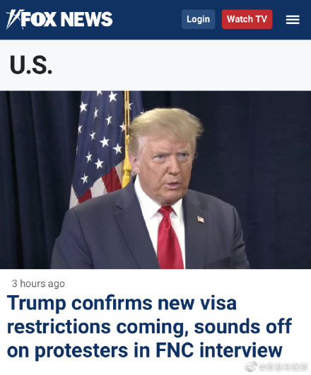 据福克斯新闻报道,美国总统特朗普6月20日表示,他将在周日或周一要求对H-1B签证采取限制措施,以阻止某些外国工人入境,保护就业受疫情影响的美国人。