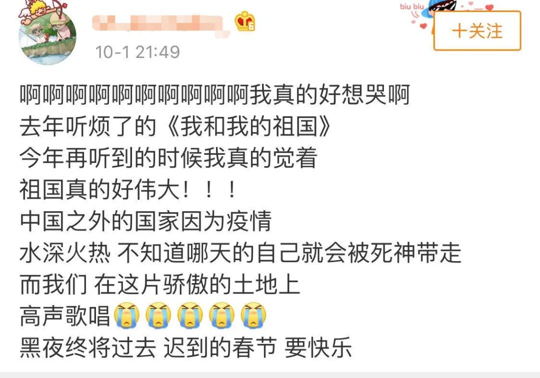 这一条条风格各异的评论后面,是一张张像你我一样平凡又充满期待的面孔,是一颗颗平常又充满力量的内心,是一串串行色匆匆又默默坚持的脚步——它们汇集在一起,是人间烟火的温暖氤氲,是寻常巷陌的几声问候,是看到升国旗时情不自禁的驻足,是抱怨道路拥堵的同时悄悄在心里说“还是这样更好”,是唱起《我的祖国》时发紧的喉咙和胸口。