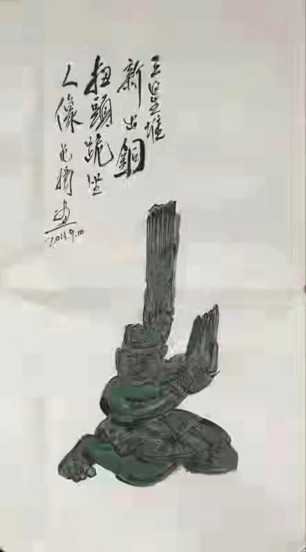 在观看了中央广播电视总台对四川三星堆的直播报道后,著名画家范扬对出土文物深感震撼。他当即挥毫泼墨,传神描绘了两座三星堆新出土的铜人像,并撰文《我画三星堆新品》。