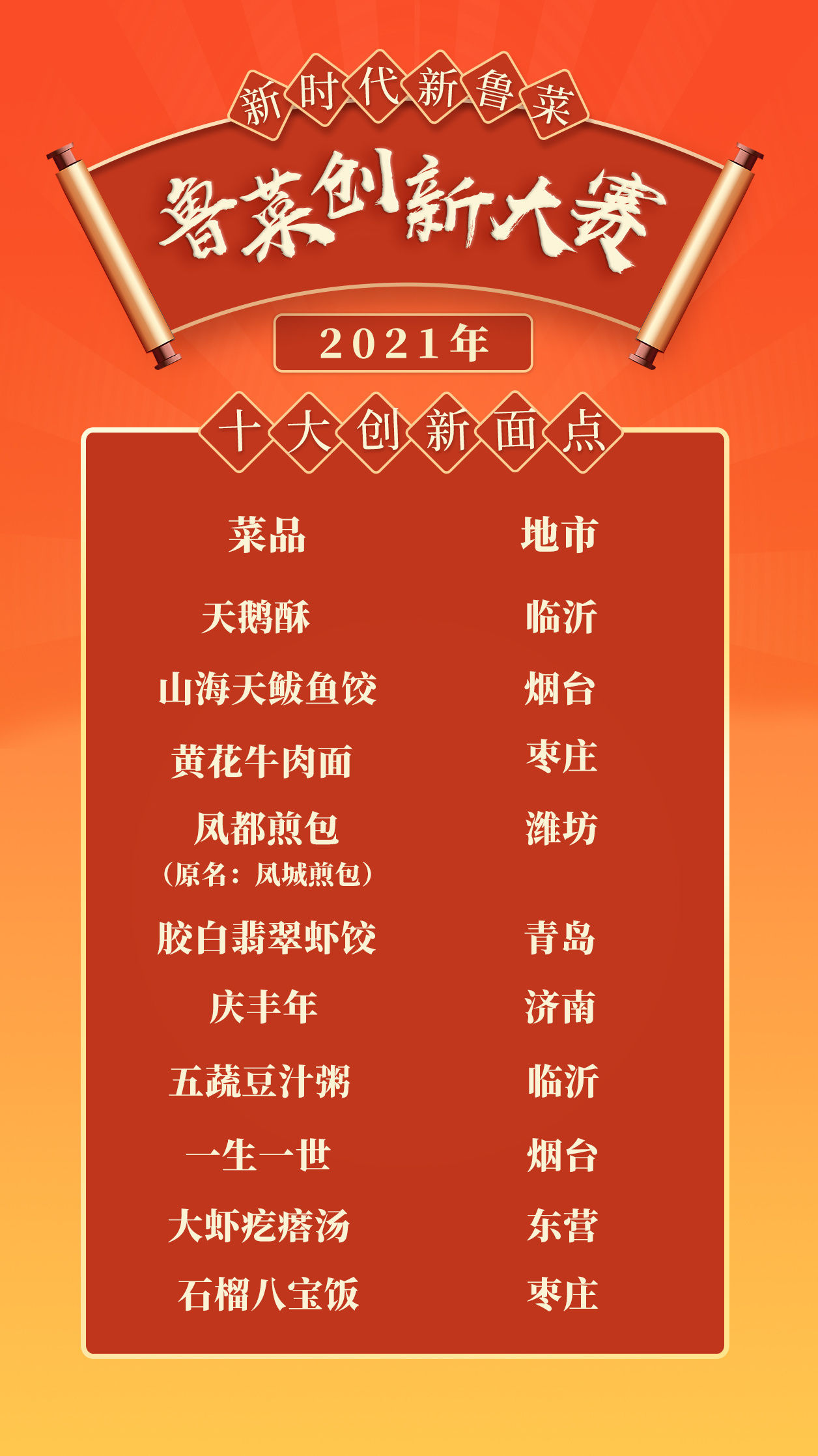 “新时代 新鲁菜”2021鲁菜创新大赛十大创新面点