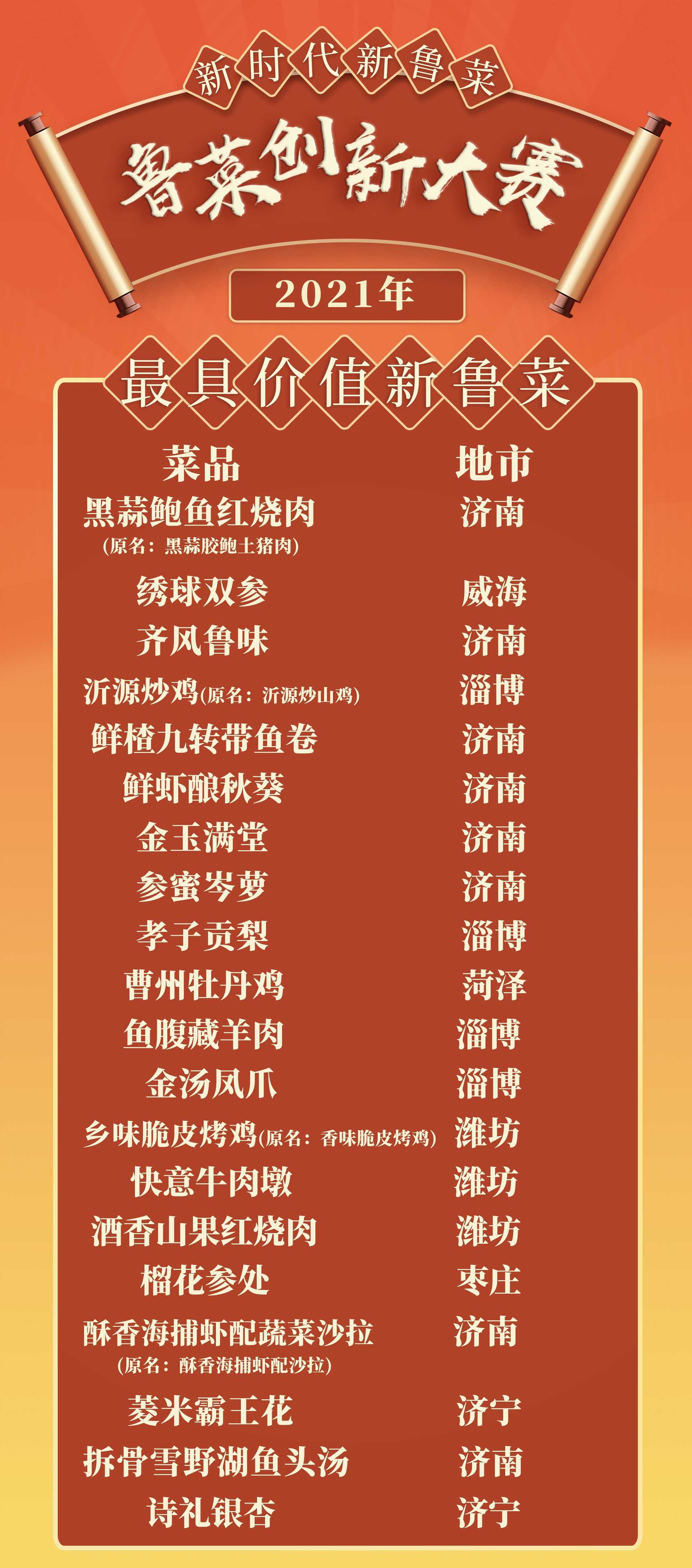 “新时代 新鲁菜”2021鲁菜创新大赛十大创新菜品