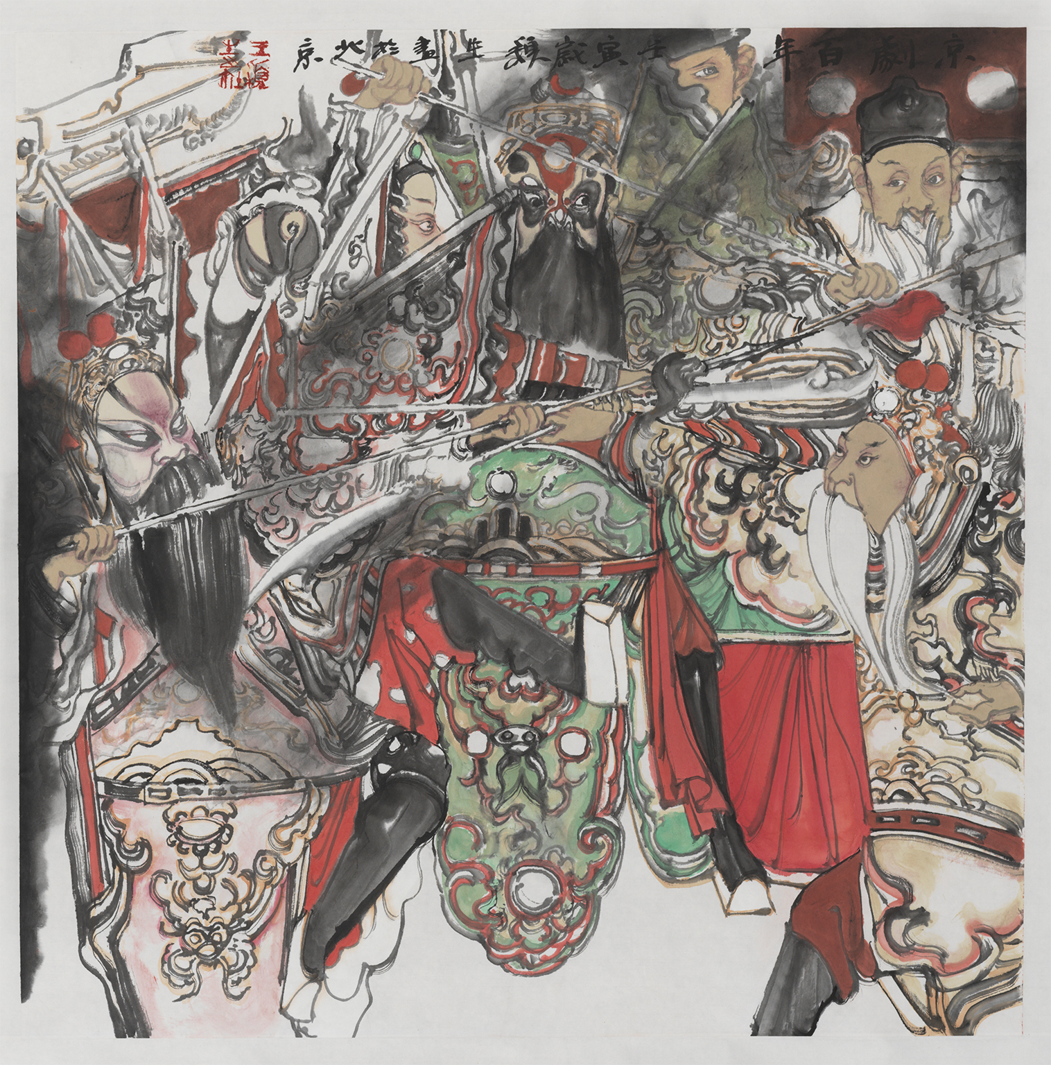 王颖生先生创作的这六幅纸本水墨作品分别是:《梨园弟子》《戏剧百年》《梨园传奇 》《舞台》 《名角》 《戏剧人生》 。画面上的人物形象、一招一式,无不有着呼之欲出的震撼力。