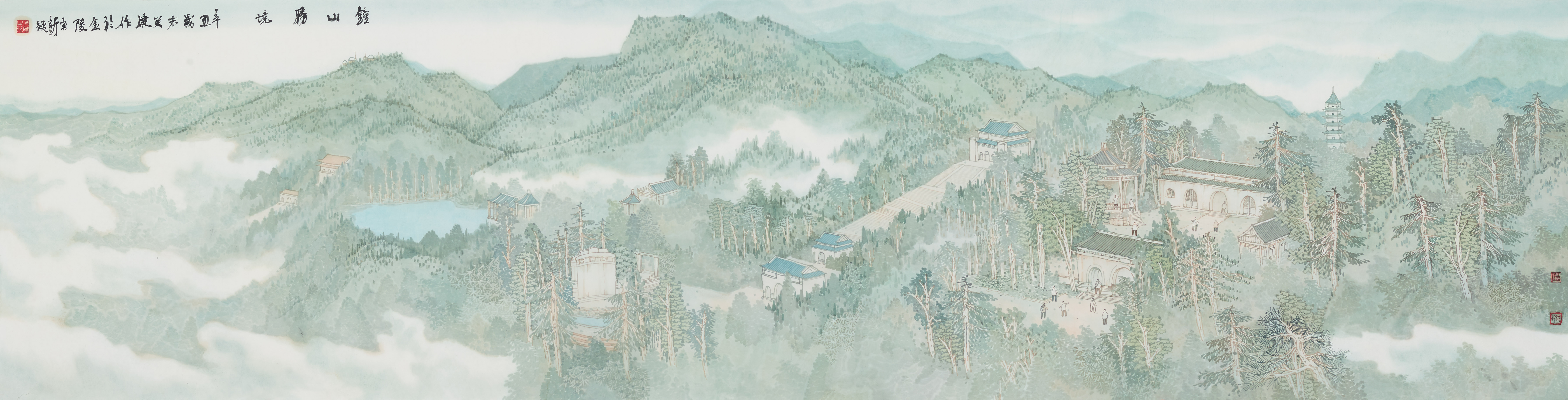 由江苏省美协主席、江苏国画院院长周京新先生执笔润色,江苏国画院知名国画家方向军、关健、郭善涛等先生共同创作,中国书法家协会主席孙晓云先生题跋的《太湖春色》和《钟山胜景》《江南园韵》等多幅巨制,一展新金陵画派的传承创新,观者无不赞叹不已!