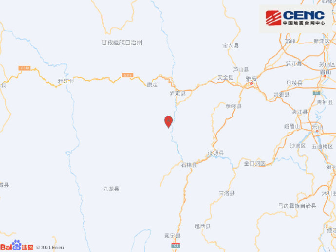 中国地震台网正式测定:09月05日12时52分在四川甘孜州泸定县(北纬29.59度,东经102.08度)发生6.8级地震,震源深度16千米。