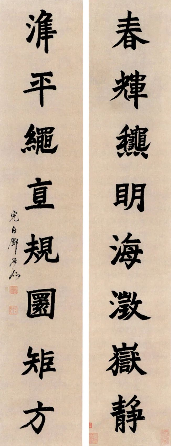 此上联咏春秋山水之美,下联则揭示作篆的法则,至言。我曾先后见到拍场有相似之联,皆是此联的仿品,形可似,而笔不可得,直令作伪者气短。