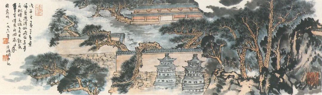 1978年冬,陆俨少先生应邀赴北京外交部作画,得暇游潭柘、戒台寺,值我探示,陆公作《两寺松桧图卷》见赠。我即乞李可染先生题写引首,李老极认真,书两纸供我选其一。