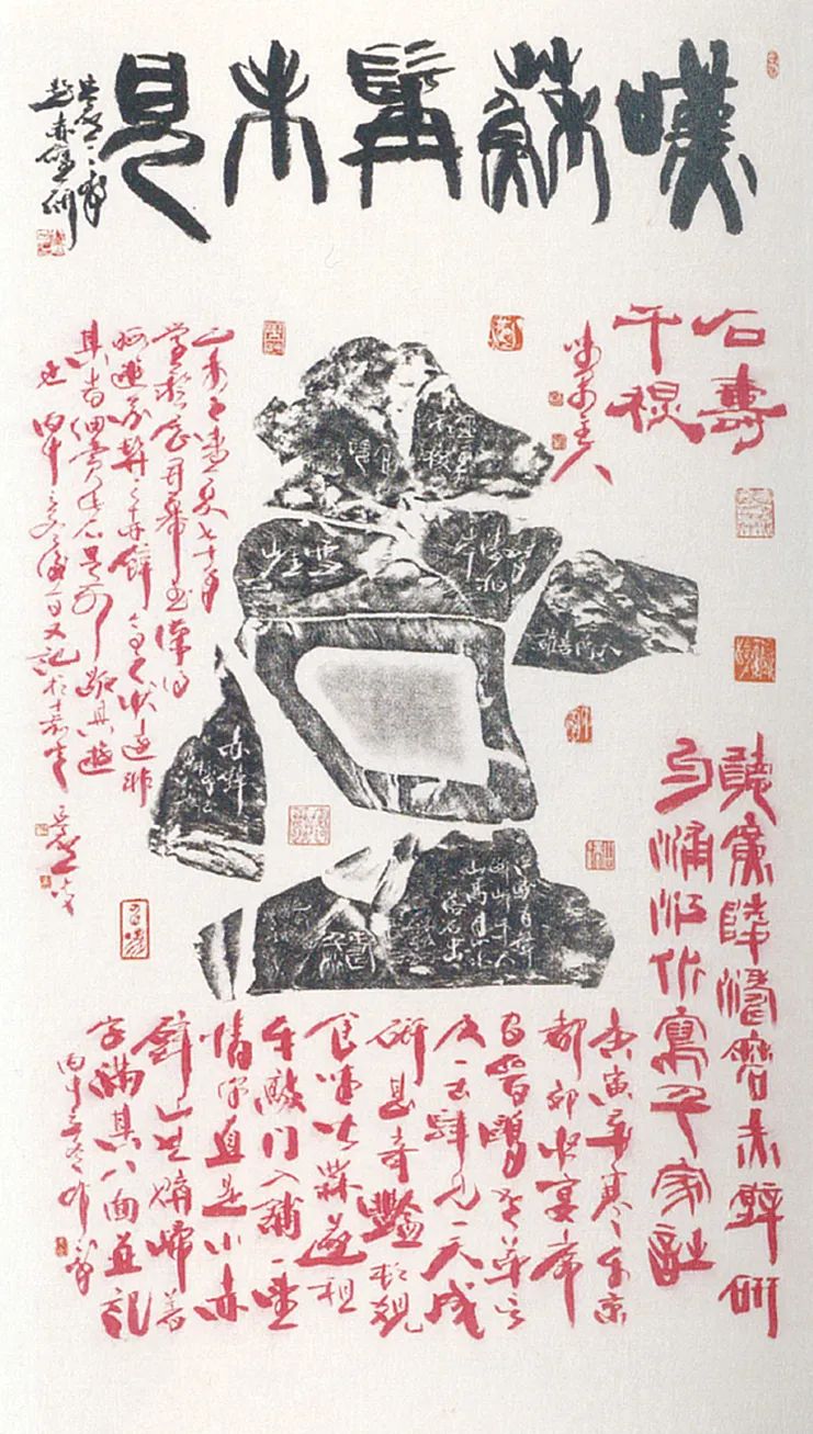 然顽石一团,重逾30斤,捎回沪上却是辛苦的劳作。购归沪渎,构思经月,于多面作正草隶篆铭,皆涉赤壁事者,八面可读可赏。