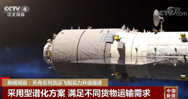 作为空间站的地面后勤补给航天器,天舟货运飞船采用型谱化方案,设计了满足不同货物运输需求的全密封、半密封、全开放3个货物舱模块,与通用推进舱模块组合形成全密封货运飞船、半密封货运飞船和全开放货运飞船3种型谱。其中,天舟五号为全密封货运飞船,是世界现役货物运输能力最大、在轨支持能力最全面的货运飞船。