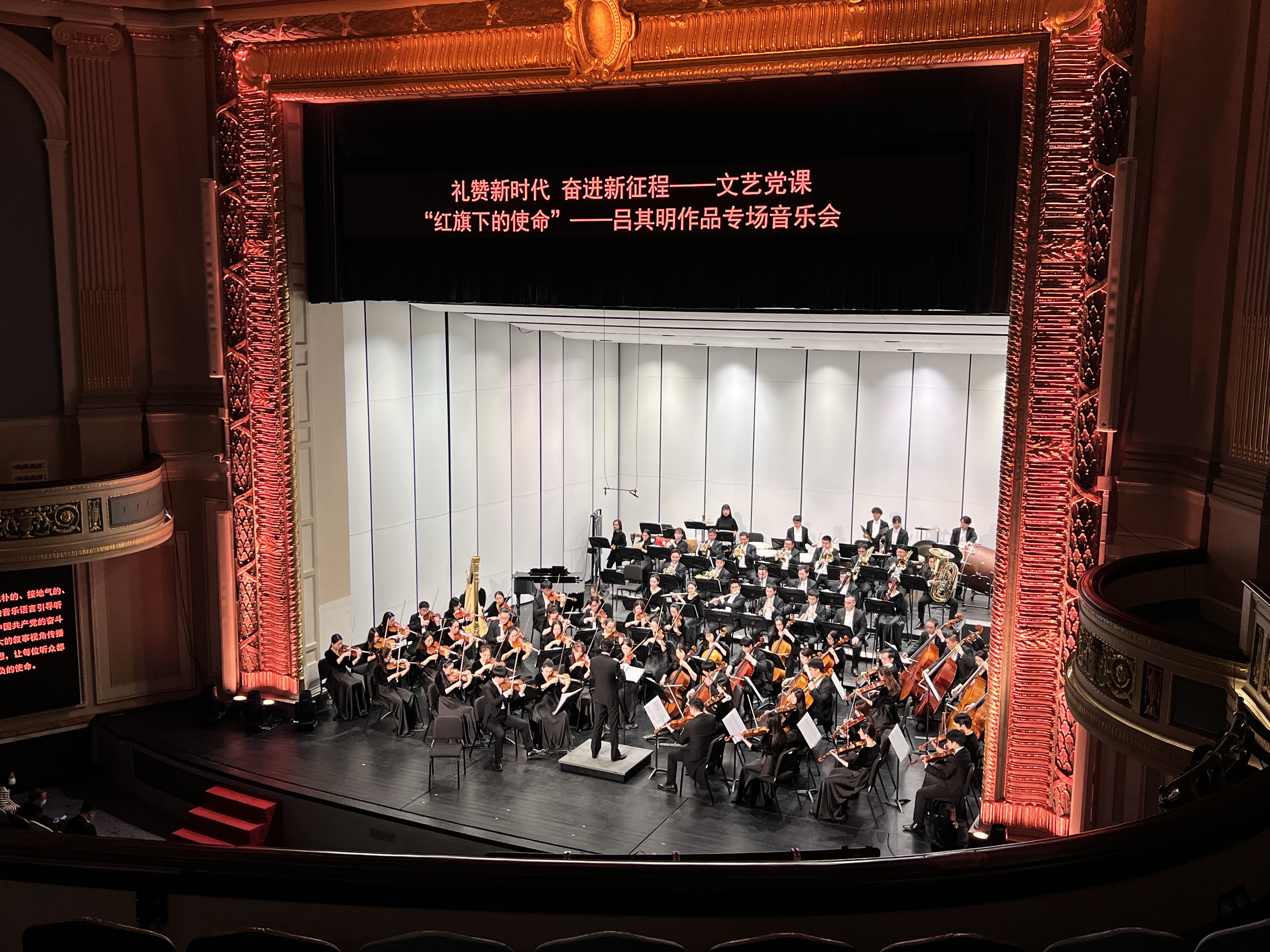 首场文艺党课由上海文广演艺(集团)有限公司、上海爱乐乐团承办,以“七一勋章”获得者吕其明作品“红旗下的使命”专场音乐会的形式呈现,引导现场党员在旋律中踏上红色之旅,在聆听中感悟初心使命。其中,管弦乐序曲《红旗颂》作于1965年春,展现了1949年10月1日开国大典时天安门上升起第一面五星红旗的盛况,表现了中国人民欢呼胜利、无比喜悦、无比豪迈,以及中国人民在新的历史进程中奋发有为、勇往直前的精神风貌,交响组曲《使命》用淳朴且具有浓郁民族风格的音乐语言,表达了对中国革命历程的一往情深和深切感受,以宏大的叙事视角传播了爱国主义思想。