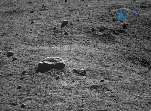 △第49月昼期间,在LE04903探测点,全景相机拍摄的紧邻车辙处有一石块。
