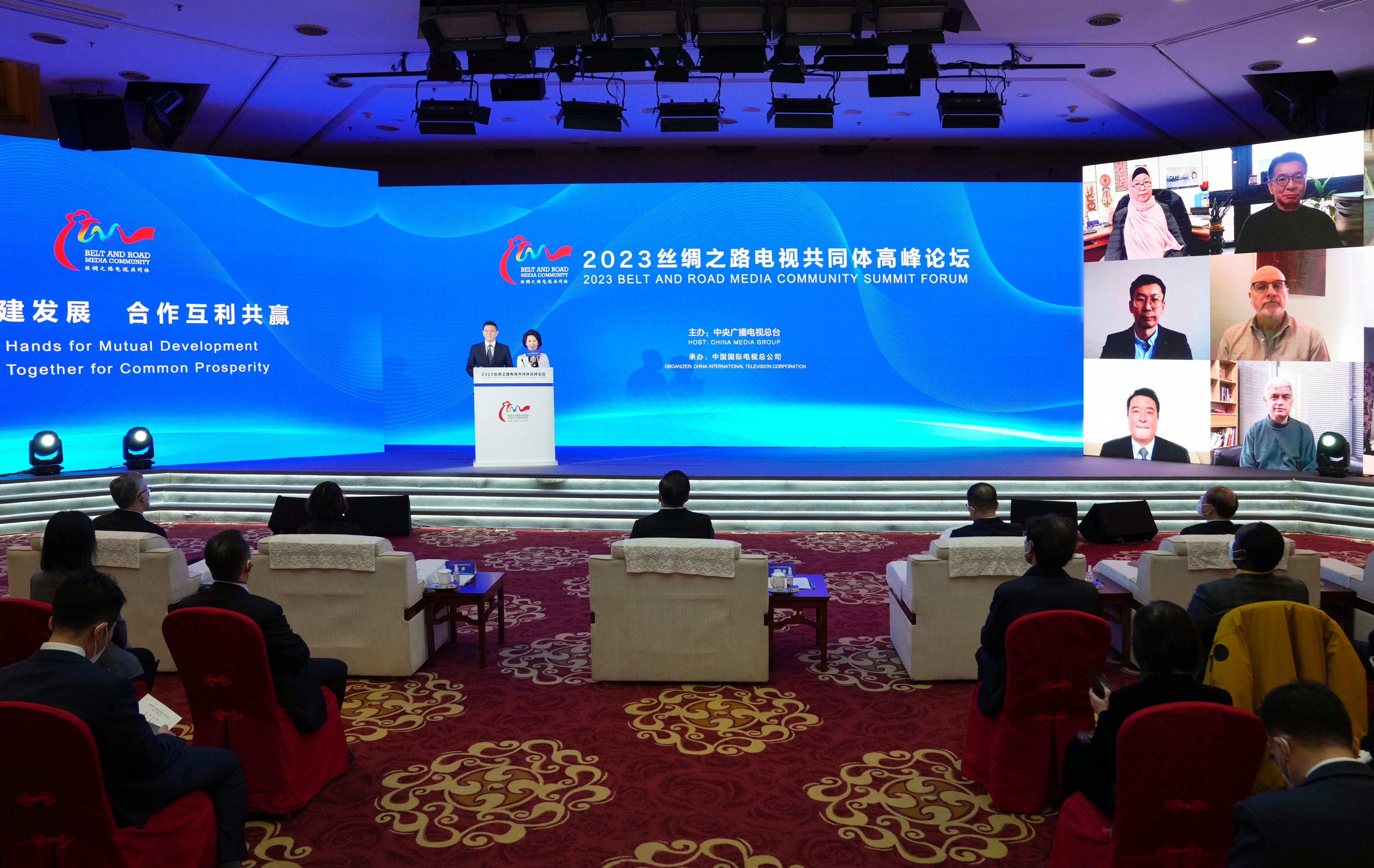2月14日,由中央广播电视总台主办、中国国际电视总公司承办的“2023丝绸之路电视共同体高峰论坛”在北京举行。本届论坛以“携手共建发展,合作互利共赢”为主题,推动“一带一路”沿线国家媒体实现更高质量的丝路合作,深化人文交流,促进民意相通。来自33个国家和地区的54家主流媒体机构120余位代表以线上线下结合的方式参会。