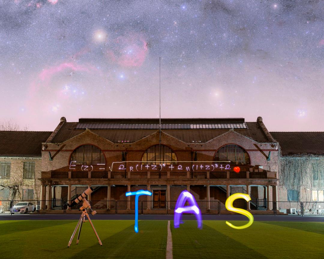 △3月7日凌晨的清华操场,他们按照真实角度合成了深度曝光的星空。王世豪摄