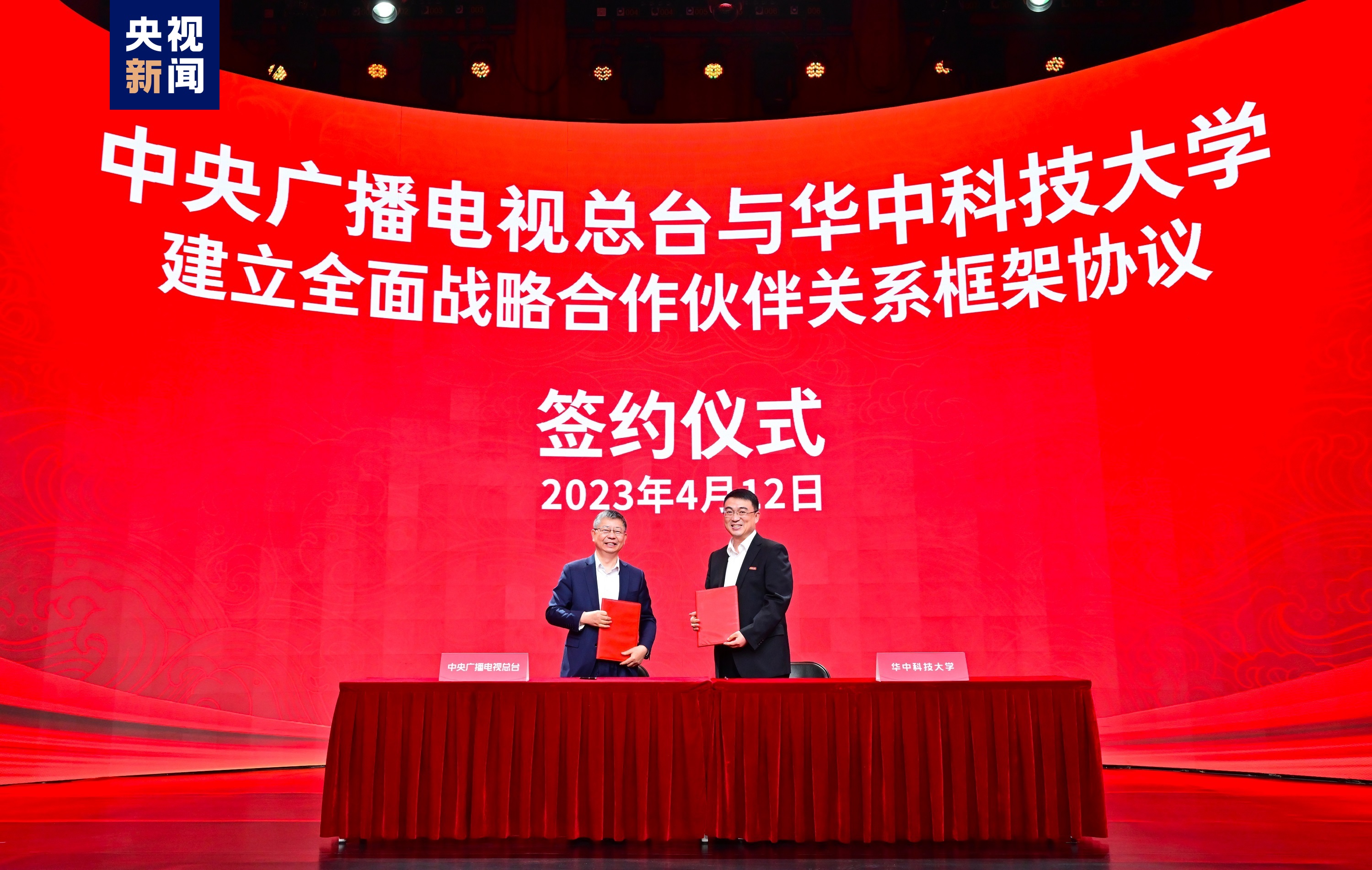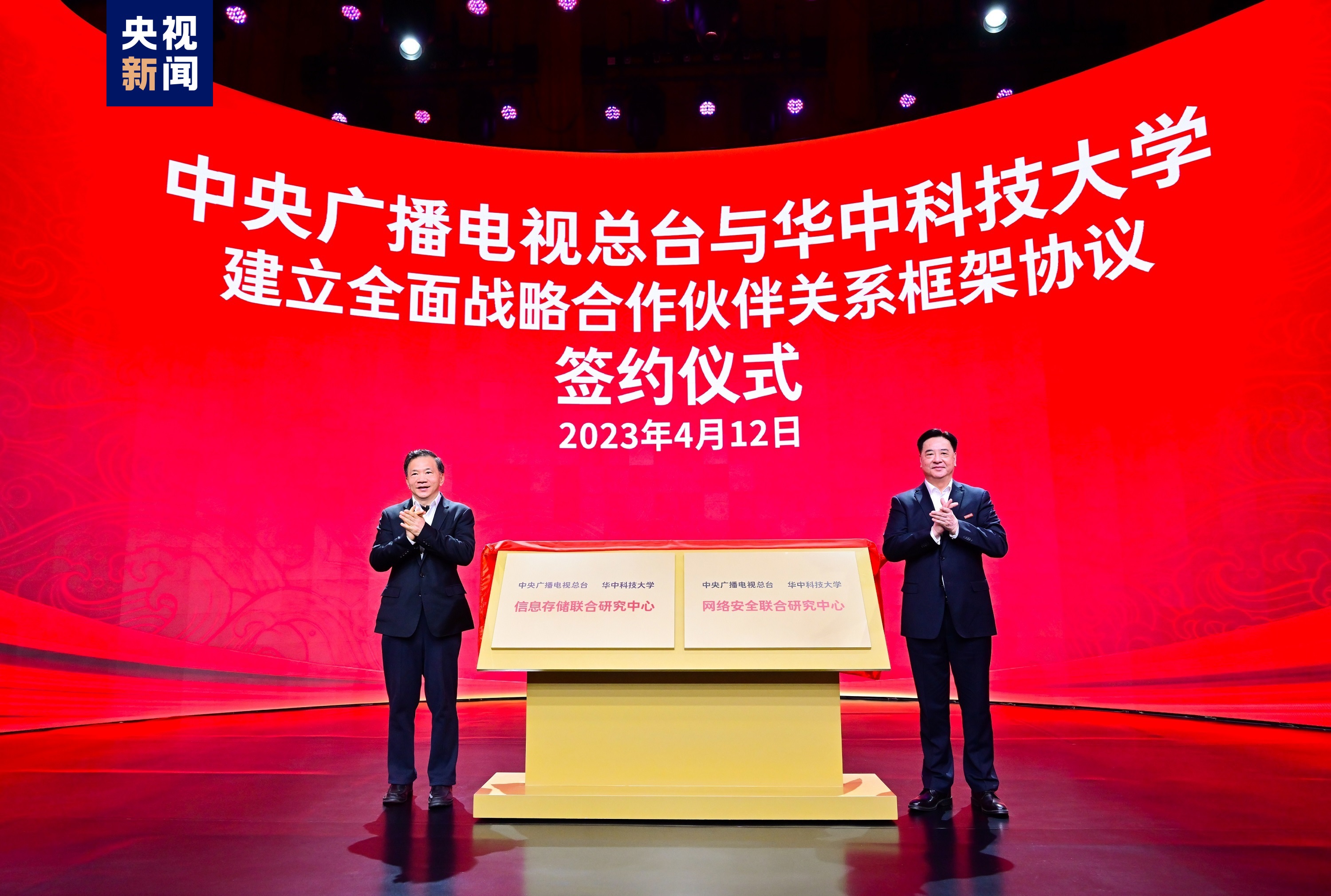 4月12日,中央广播电视总台与华中科技大学签署全面战略合作伙伴关系框架协议。中宣部副部长、中央广播电视总台台长慎海雄,华中科技大学党委书记李元元出席签约仪式并共同为“中央广播电视总台-华中科技大学信息存储联合研究中心”“ 中央广播电视总台-华中科技大学网络安全联合研究中心”揭牌。中央广播电视总台副台长邢博,华中科技大学校长尤政出席并致辞。中央广播电视总台编务会议成员姜文波和华中科技大学副校长高亮代表双方签约。
