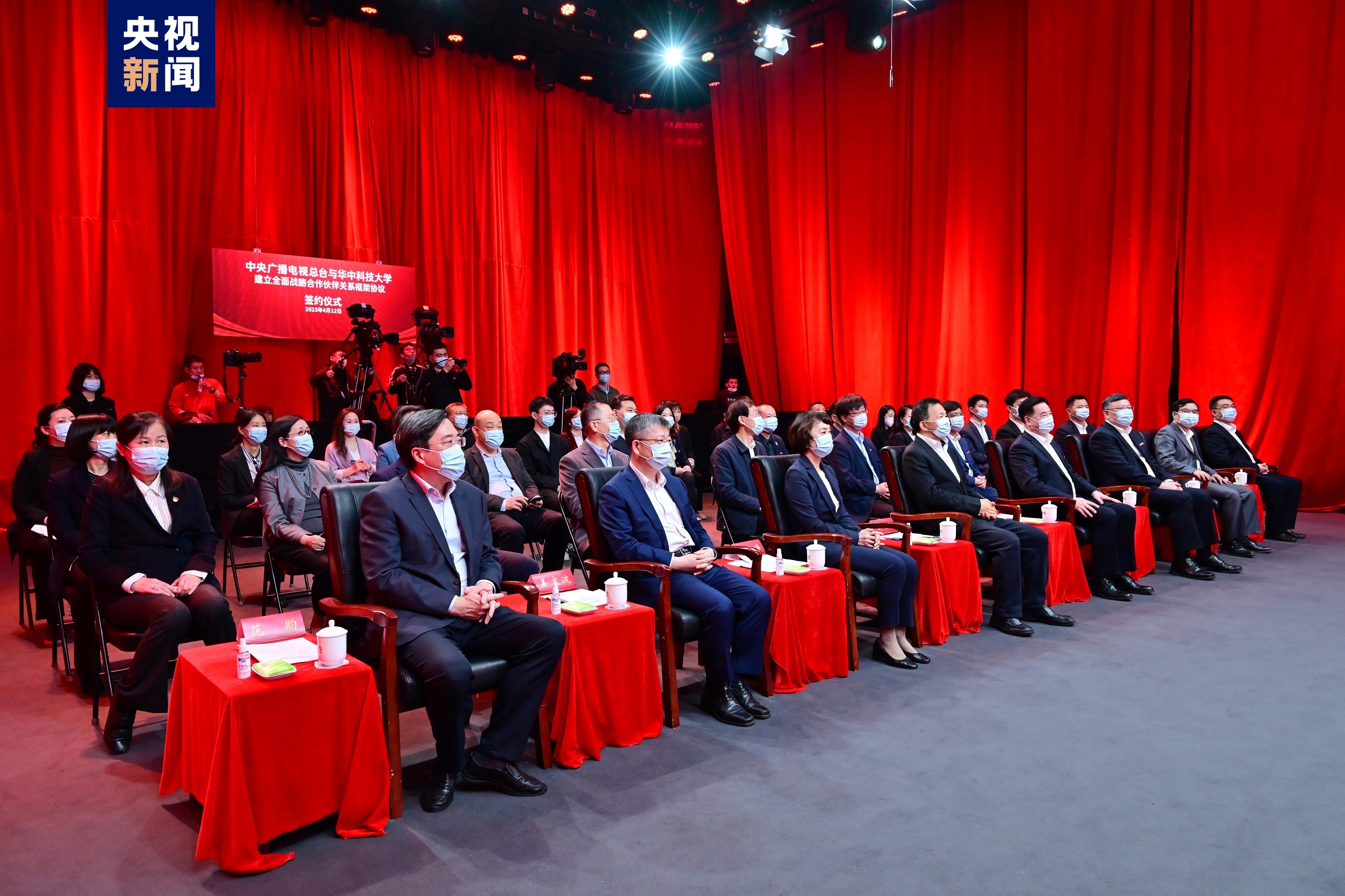 中央广播电视总台编务会议成员范昀,华中科技大学党委副书记、纪委书记徐业勤及总台相关部门负责人、华中科技大学相关部门负责人参加签约活动。