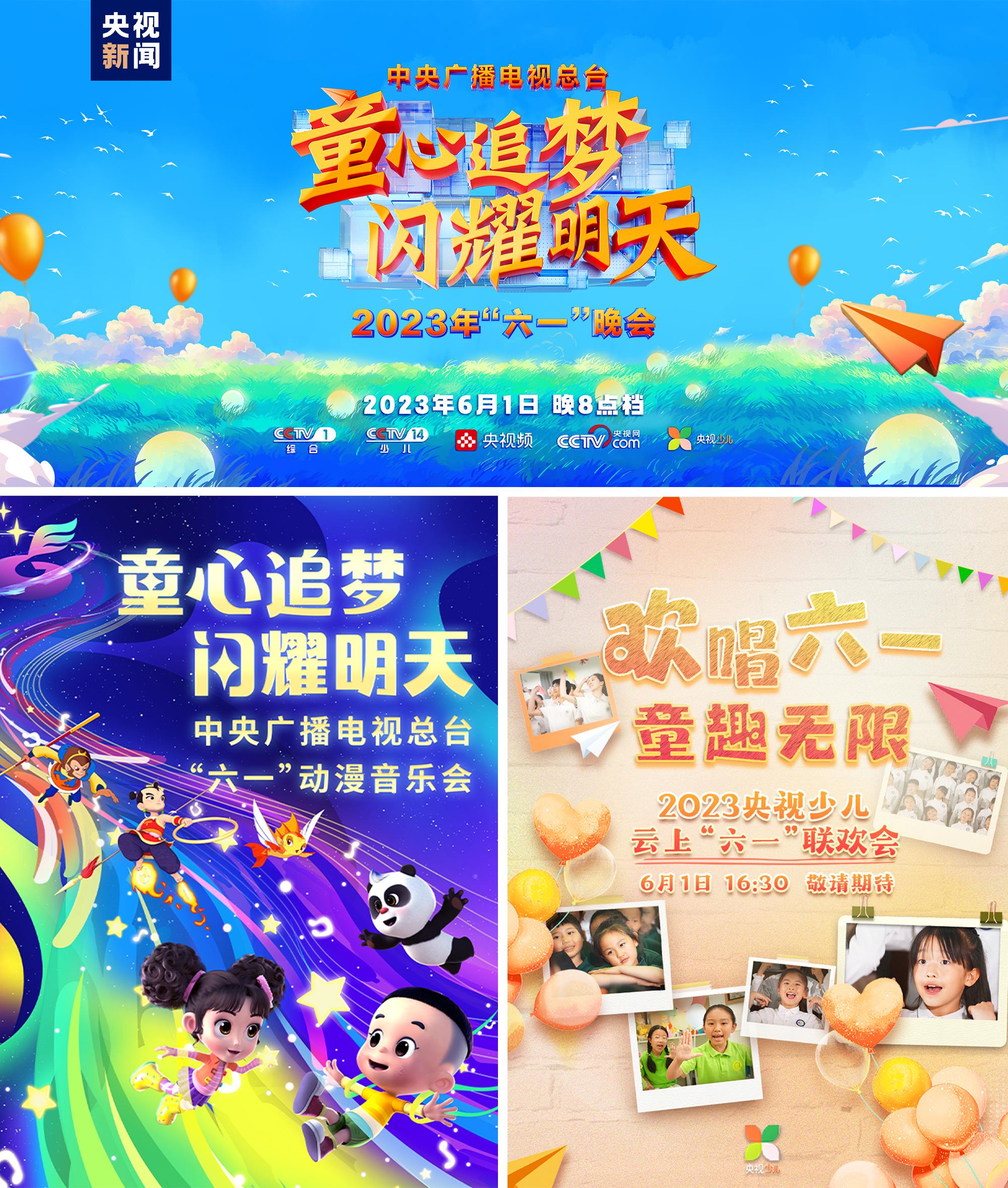 “六一”期间,总台以高水准的视听体验给广大少年儿童送上专属节日礼物。《2023年“六一”晚会》领衔亮相,以“童心追梦 闪耀明天”为主题,带领孩子们一起探索未来,为想象插上翅膀。晚会将于6月1日20:00档在总台央视综合频道(CCTV-1)、少儿频道(CCTV-14)播出,央视频、央视网、央视少儿客户端等新媒体平台同步推出。《中央广播电视总台“六一”动漫音乐会》《云上过六一》等节目用最美的童声唱响一首首经典歌曲,陪伴孩子度过欢乐的六一儿童节。