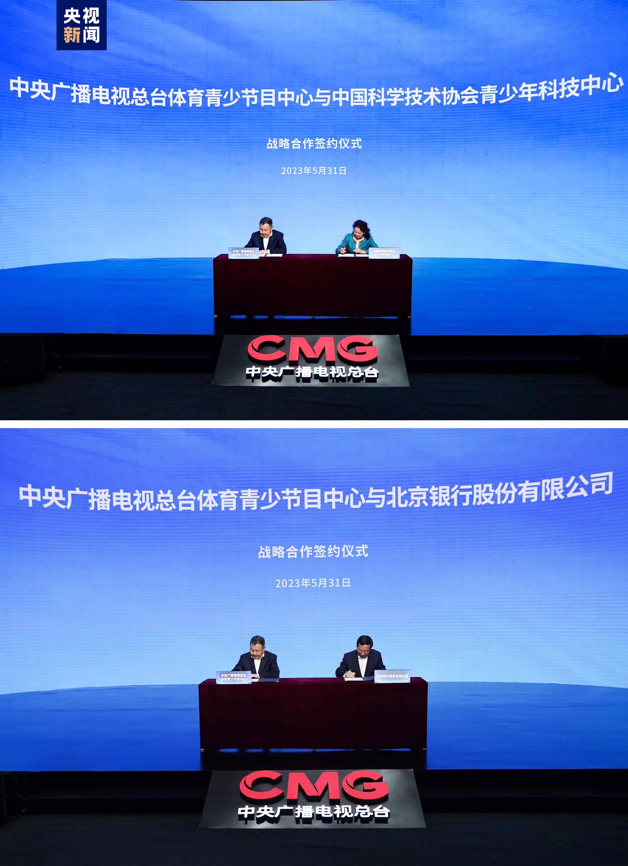 活动现场,中央广播电视总台体育青少节目中心与中国科协青少年科技中心签署战略合作框架协议,与北京银行签署战略合作备忘录,持续深化与社会各界的广泛合作。