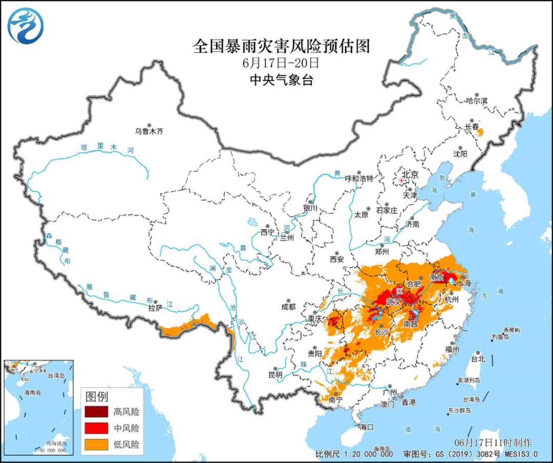中央气象台预计,17日至20日,长江中下游地区等地将有强降雨过程,本次过程强降雨集中、叠加度高,易产生暴雨灾害 , 中国气象局已启动重大气象灾害(暴雨)Ⅲ级应急响应。