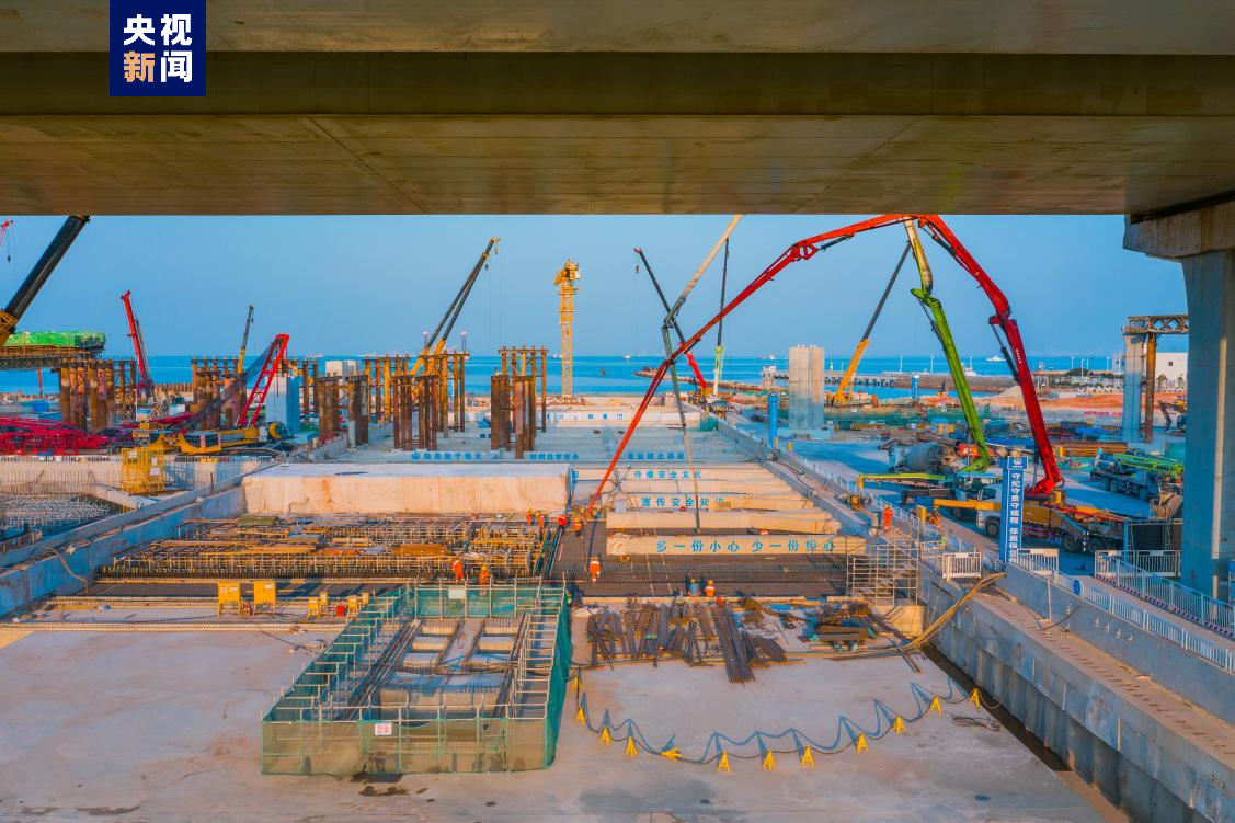 △深中通道东人工岛正浇筑主线隧道最后一段顶板混凝土(摄影:赵永才)