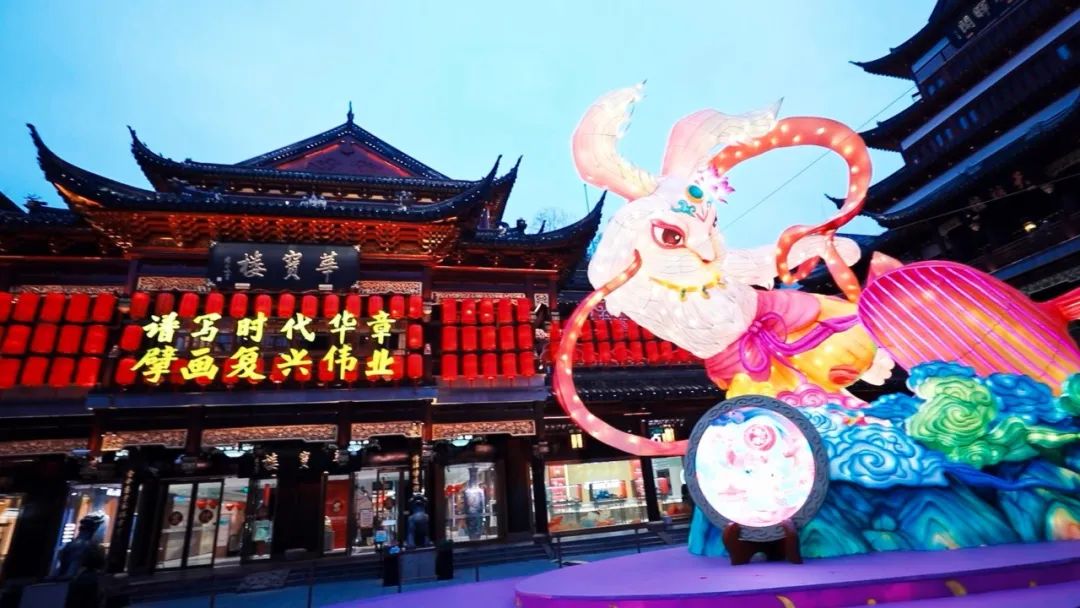 兔年春节即将到来,城隍庙里的灯彩已经“上新”,玉兔东升、鹏程万里,暖心的灯火带着人们的期许,照亮了新岁。