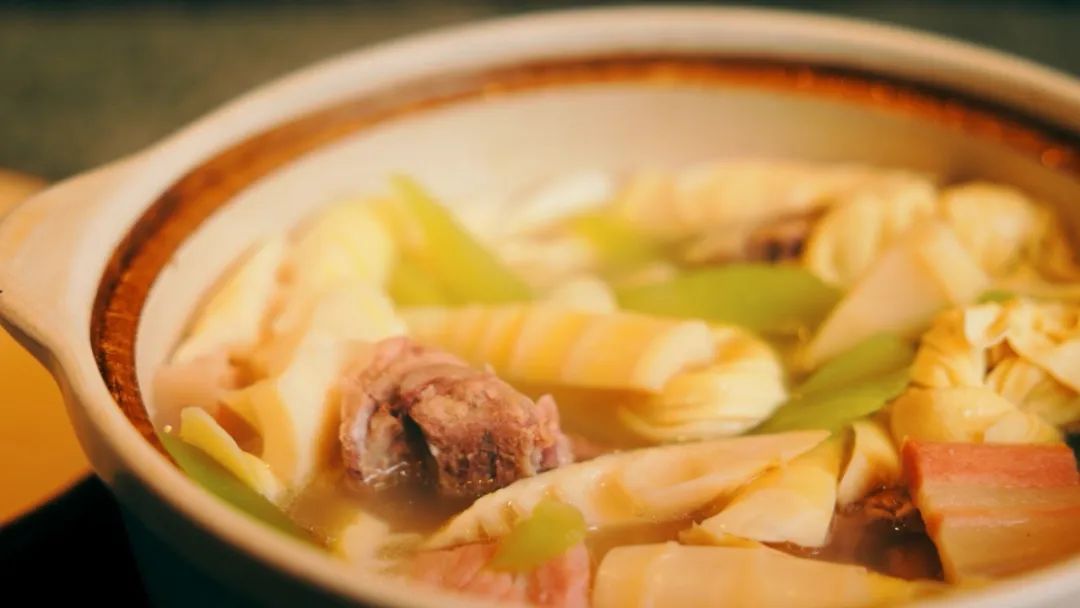 一碗热腾腾的鲜汤,是这个乍暖还寒的时节,最体贴的呵护。腌笃鲜,一道江南地区的传统名菜,用时鲜的春笋,与咸肉、鲜肉、百叶结、莴笋等丰富食材,慢炖而成。“腌”代表腌制的咸肉,“鲜”代表新鲜的肉,“笃”就是小火煮炖的意思。