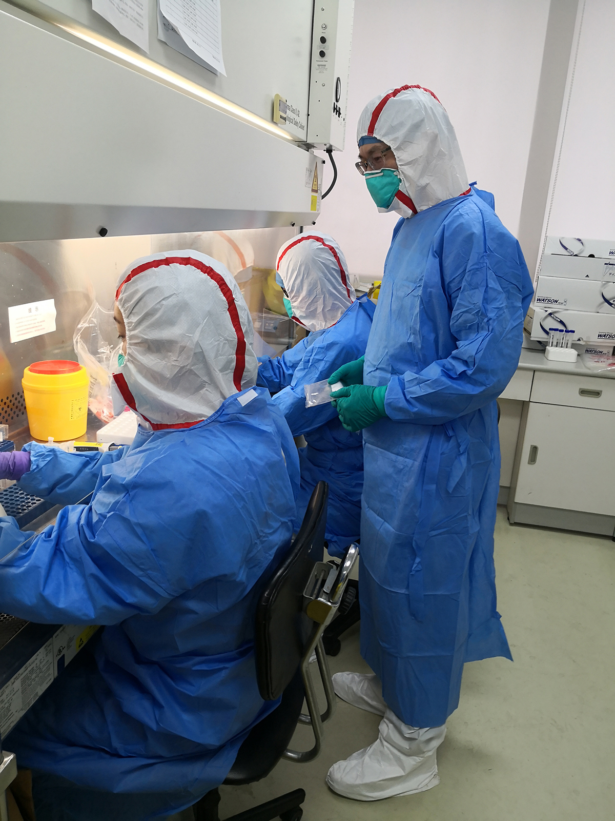 专业人员穿戴厚重的防护服,每次进入检测室连续工作6-8小时,工作强度很高。每轮检测6小时出检测报告,检测结果送市疾控应急办,结合流调观察评估,两次核酸复核——粗略算来, 一个样本顺利的话,24小时内可通报卫健委。