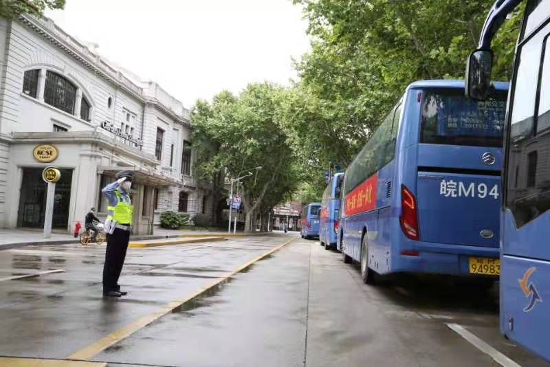 5月7日下午,黄浦分局交警支队按照最高礼遇、最高规格,由3辆警用摩托车和2辆警车组成的交通护卫队,将援沪医疗队安全护送至G2京沪高速江桥收费站,圆满完成交通护送任务。期间,沿线安保警力向车队敬礼,表达了黄浦公安对援沪医疗队的崇高敬意和衷心感谢。