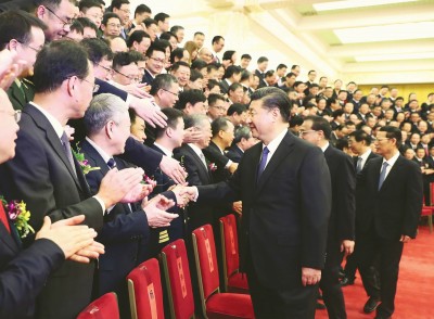 习近平、李克强、张高丽、王沪宁出席大会并为获奖代表颁奖。会前,习近平等党和国家领导人会见获奖代表。新华社记者鞠鹏摄