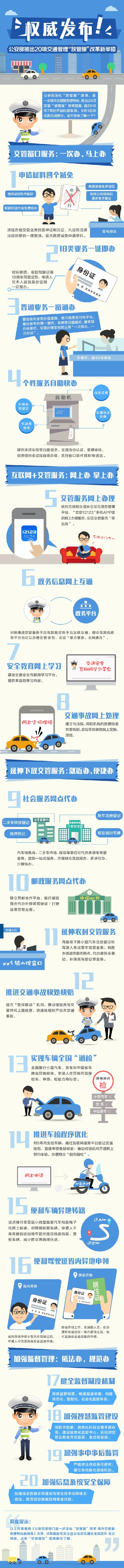公安部28日公布了简捷快办、网上通办、就近可办等20项交通管理“放管服”改革新措施。9月1日起,20项新举措将全面启动推行。