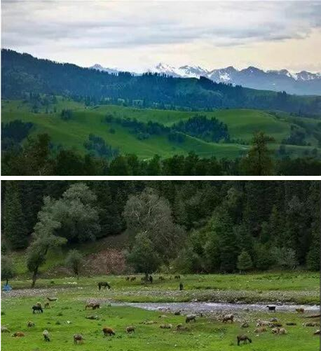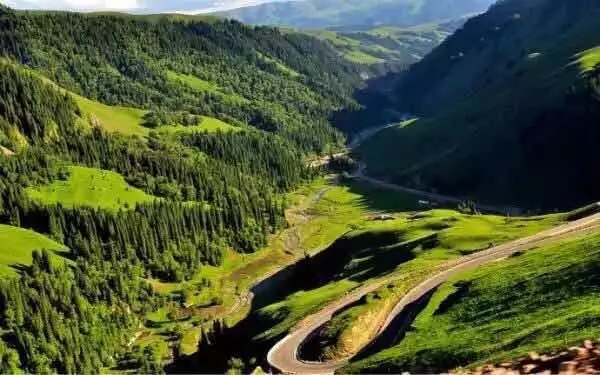 其实,在拥有草原、冰川、雪山、湖泊等多种地貌形态的新疆,公路穿行或盘绕其间常常会有种时空错节的感觉。特别是独库公路南北段地貌差异较大,由于北段植被覆盖率相对较低,多苍凉、险峻之感;而南段草场丰美、山林茂密,山河秀美、生机盎然。