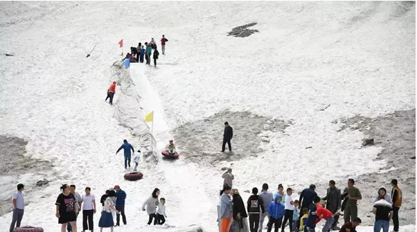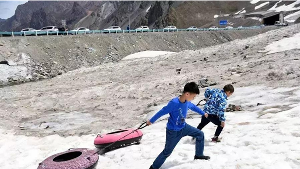 杭州游客李洁说:“趁着孩子放暑假,带孩子来新疆旅游,听说独库公路很美,就想自驾体验一番,没想到在夏天还能看到雪,孩子玩滑雪,很开心,真是不虚此行。”